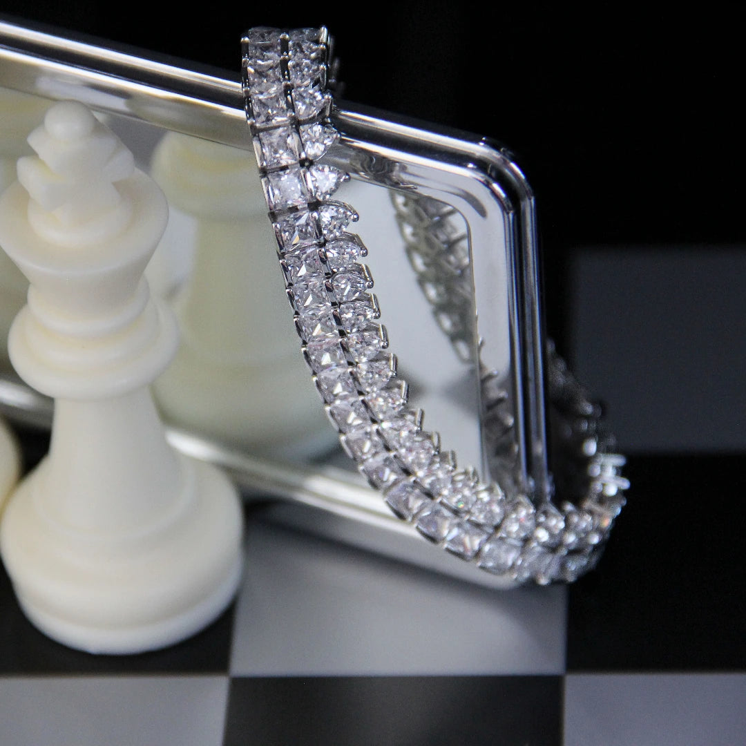 Et nyt moderne design af det klassiske tennisarmbånd. Det er ikke let at glemme dette kroneformede armbånd. Som bæreren kan din arv heller ikke let glemmes.