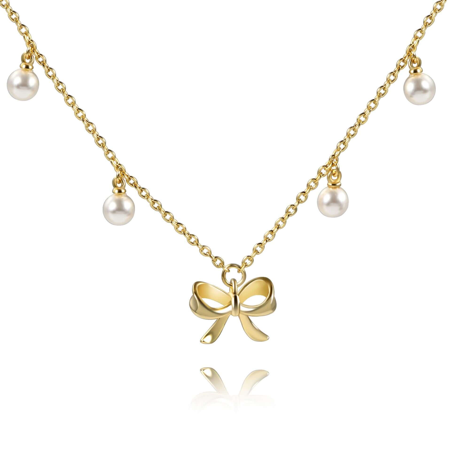 The Pearl & Bow Charm Necklace perfectly blends elegance and charm. With lustrous pearls and a sweet bow detail, this Necklace adds a sophisticated touch to any look.